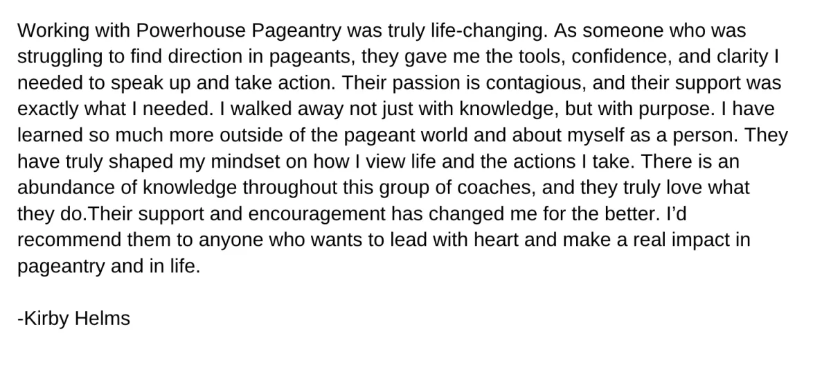 And now, Powerhouse has become the #1 online training company for women who want to win their pageant without losing themselves.
